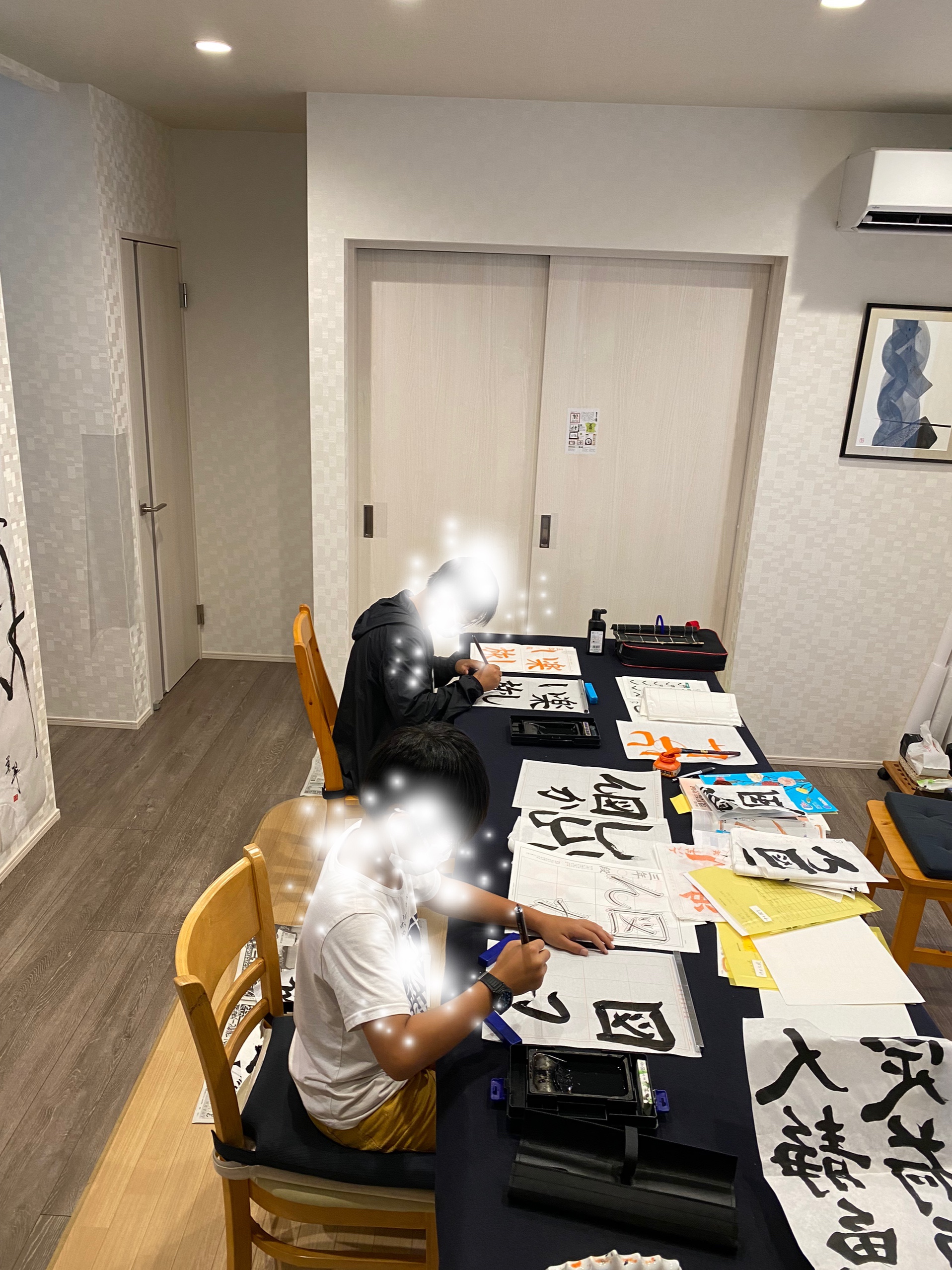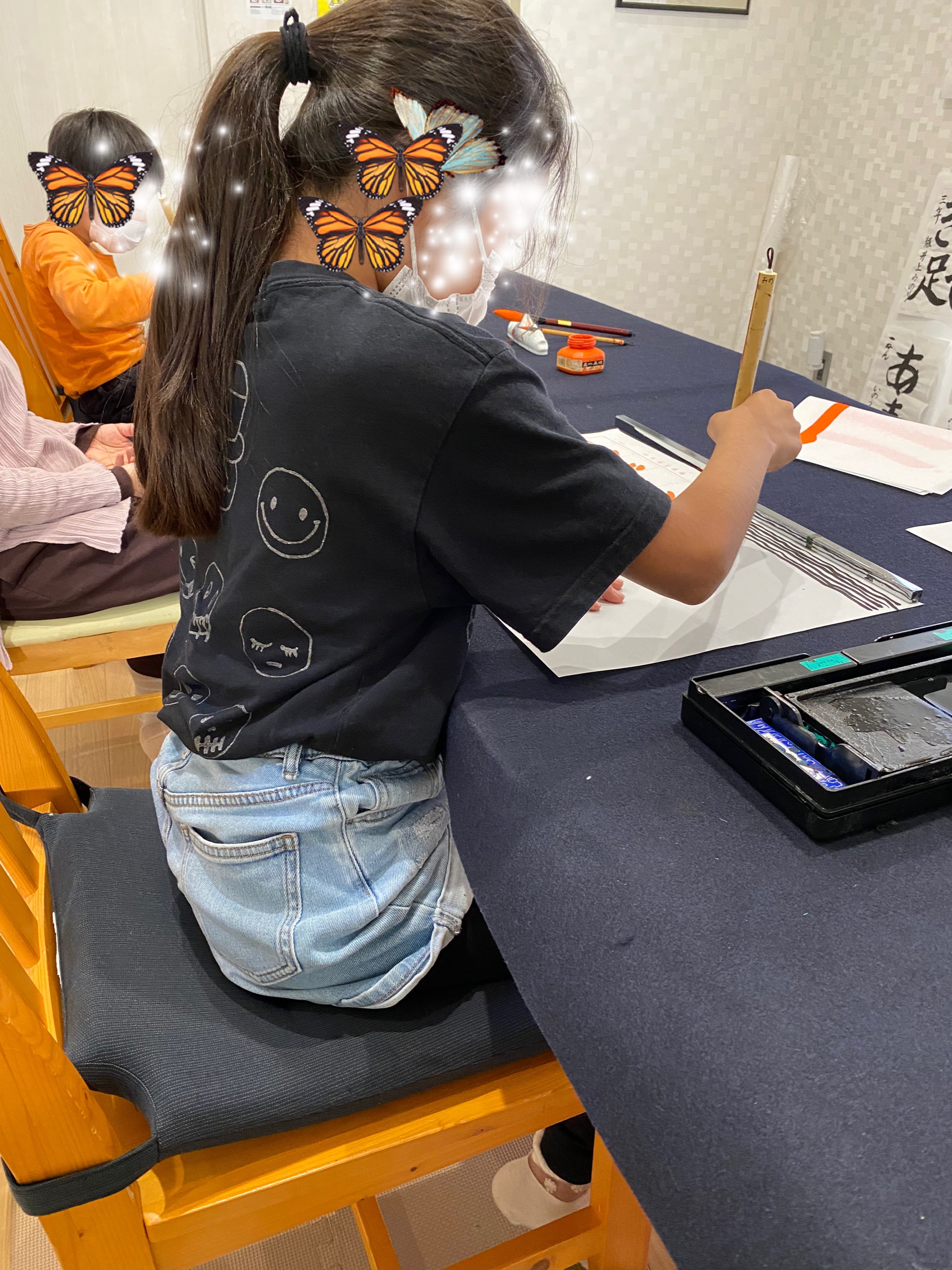 小学生もしっかりできています やっぱり姿勢がいいって美しいです おまけの授業は筆を使ってアート