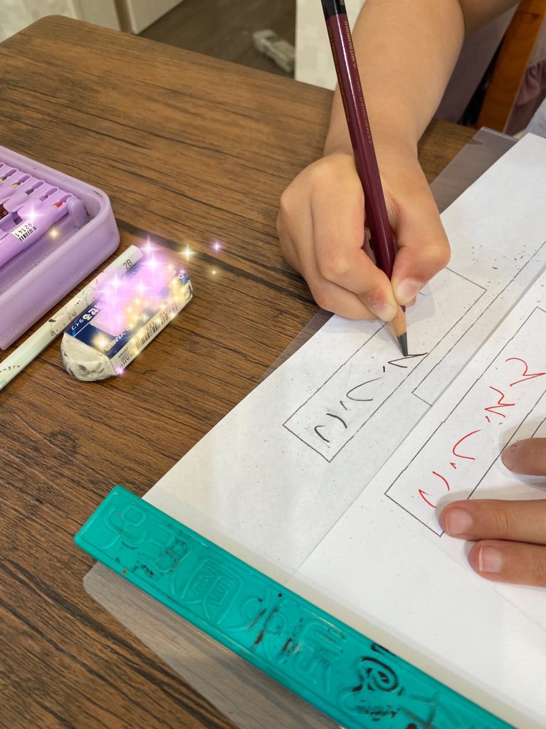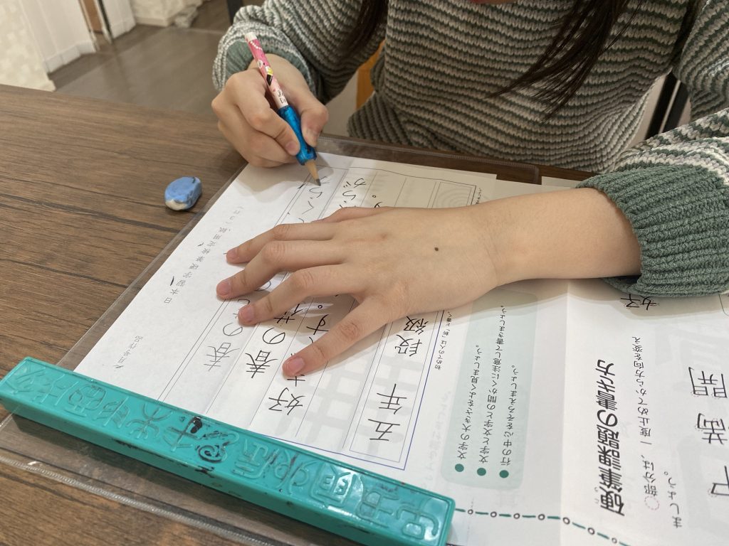良い姿勢と鉛筆の正しい持ち方 とても大切です 鉛筆に持ち方くんをはめて使うと正しい持ち方に近づきます 自分で意識して頑張っています👍👌 しっかり出来ています! 素晴らしい👍👏☺️ 硬筆の練習始めて3回目小学2年生✨素晴らしい😀