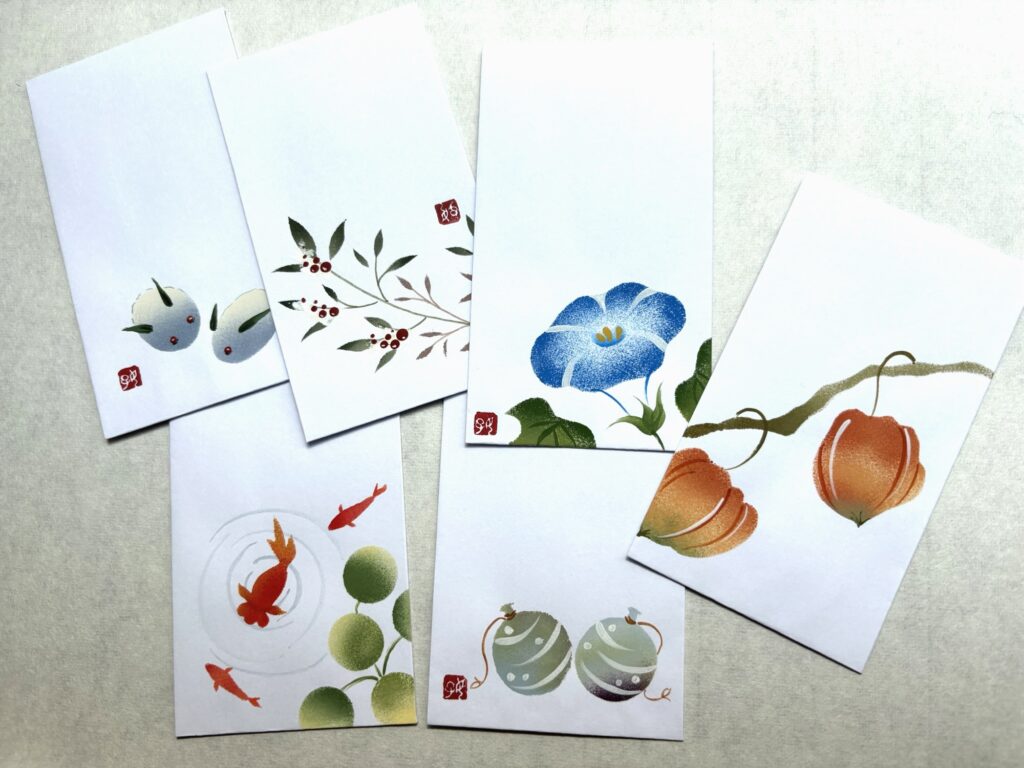 味覚の秋 葡萄に梨 柿 栗🌰何でも美味しい季節ですね ⭐︎字を書くのも絵を描くのも大好きな女の子が手書きのイラスト持ってきてくれました!すごく時間かけて書いたみたいであまりの上手さに驚きました! 素晴らしい鉛筆画😀👍将来が楽しみです♪ 鬼滅の刃 大人気 ⭐︎次は大人の方 縁起言葉のパネルつくり⇩ オシャレにできました🤍 ⭐︎秋のポストカード ⭐︎ご紹介 生徒様より手作りのポチ袋いただきました。ステンシル画です 素敵
