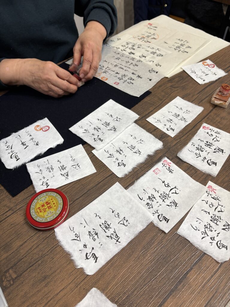 こんにちは武雄 書道サロンです 11月の投稿から少し間が空いてしまいましたが、気がつけばカレンダーも最後の一枚となりました。 12月に入り、当サロンもおかげさまで慌ただしくも充実した日々を過ごしており、今月初めてのブログ更新となってしまいました。 外の寒さとは対照的に、教室内は墨の香りと、一筆一筆に集中する皆様の熱気に包まれています 3年生 福岡県教室 1年生 福岡県教室 ひらがなカード 「馬が合うご縁に感謝を込めて」1年間のありがとうメッセージカード作りました! 画仙紙に書きます 画仙紙に書きます 体力使います