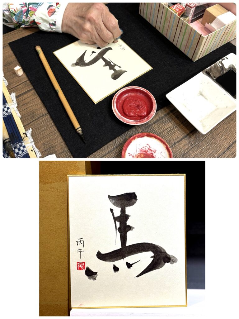 本日はクリスマスイブですね。 素敵な贈り物をいただき、さっそく玄関に飾りました。 瑞々しいお花があるだけで、空間がパッと華やぎ、心も温まります。 今回は「馬」という字を、小さく、そして凛とした感じでミニ色紙に書きました 躍動感がありつつも、新しい年を静かに迎えるような佇まいを意識しています。 皆様も、どうぞ温かく素敵な聖夜をお過ごしください。